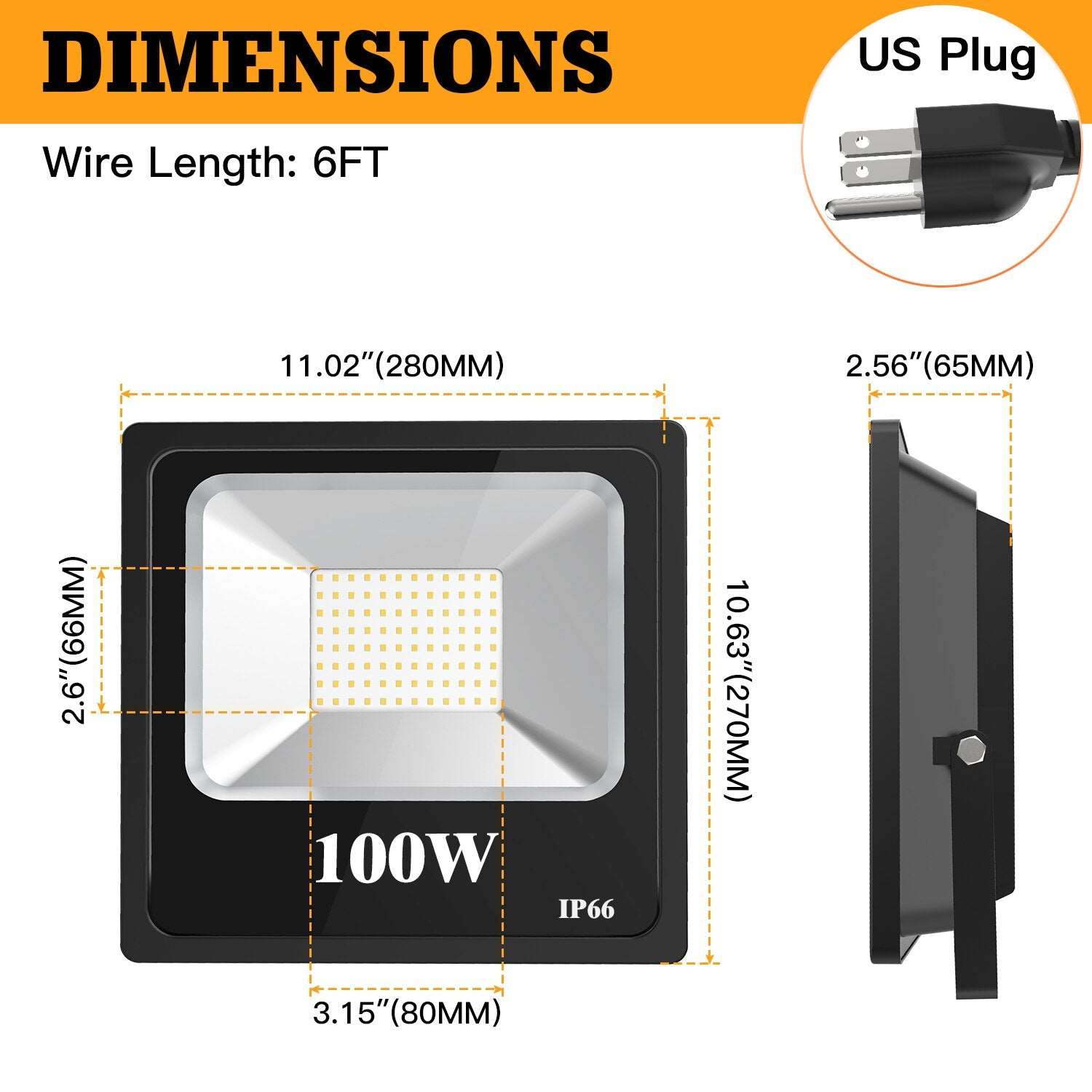 100W LED Stadium Flood Light - 14000 Lumens Super Bright Outdoor Lighting for Sports Fields and Courts, 5000K, 120V US Plug