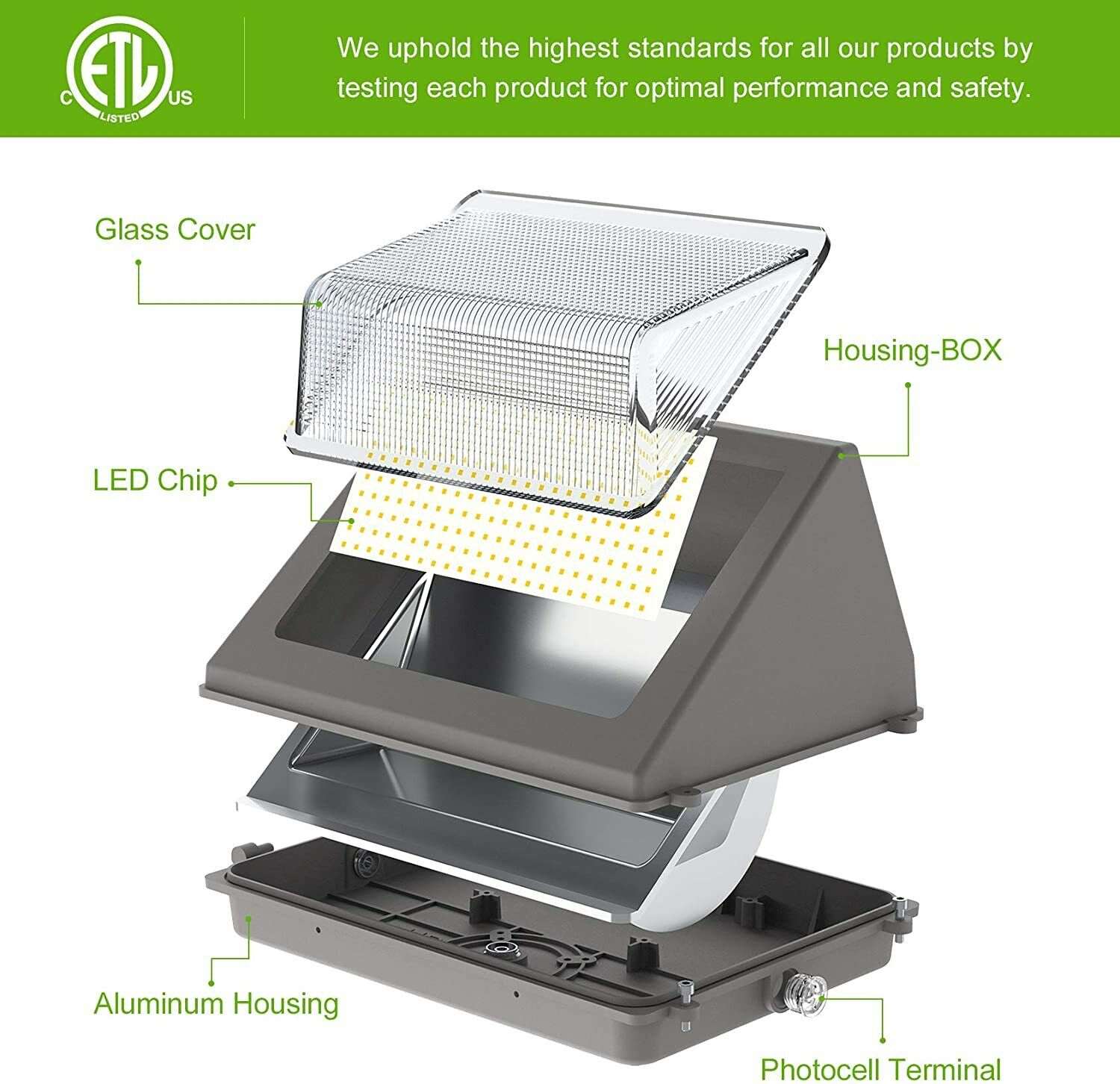 120W LED Wall Pack with Photocell Outdoor ETL 120-277V 5000K 15600LM IP65 Wallpack Glass Cover Waterproof Dusk to Dawn Lighting
