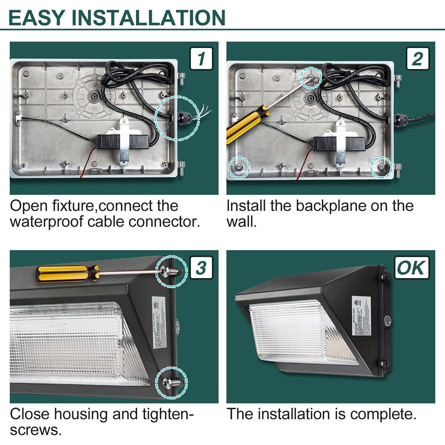 Bring your outdoor lighting to the future with this 100W Glass Cover Security Light. Offering an ultra-bright 13,000LM of 5000K daylight and a reliable ETL certification, it will light up your home from dusk till dawn. Enjoy this sturdy and reliable light with photocell sensor!