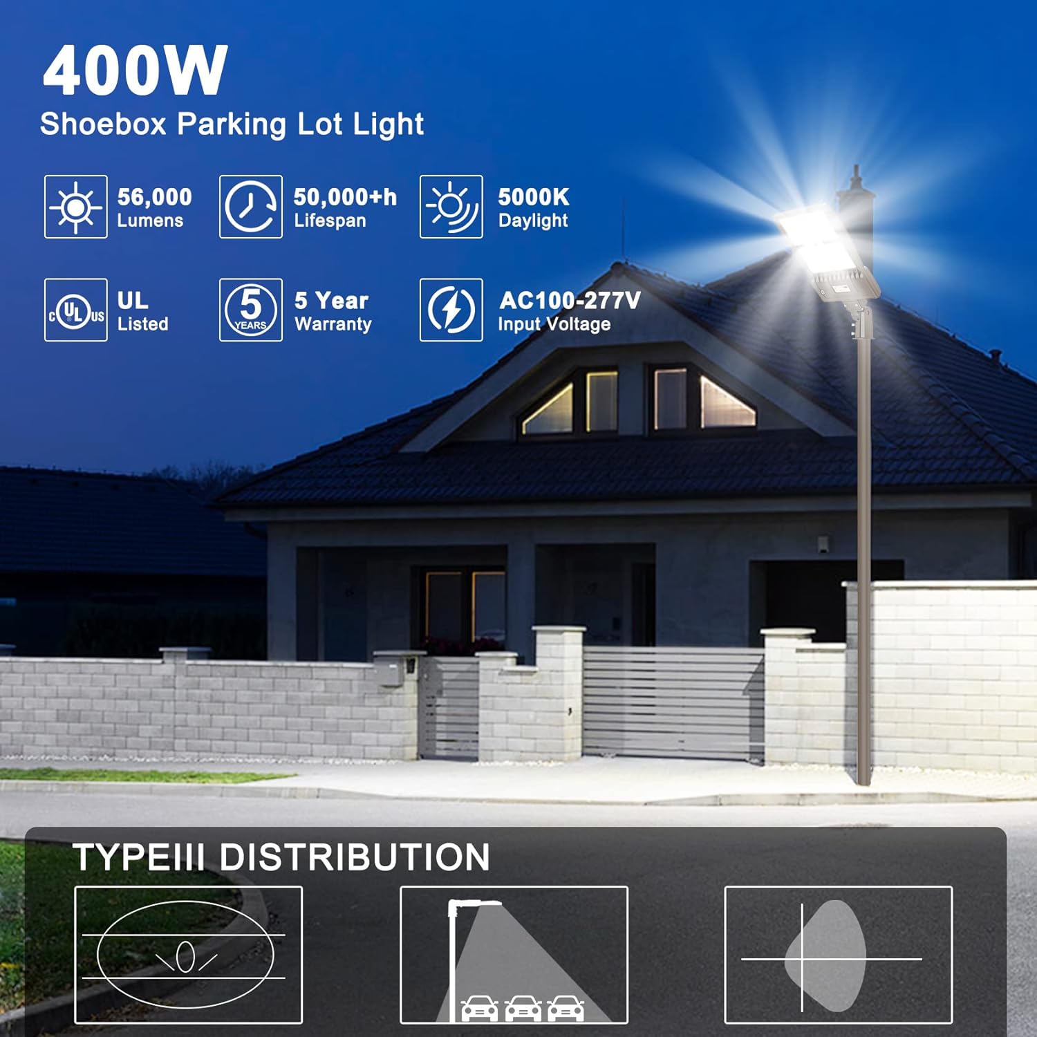 400W LED Parking Lot Light 56,000LM Outdoor Street Area Lighting with Slipfitter Mount,100-277V 5000K, UL DLC Listed