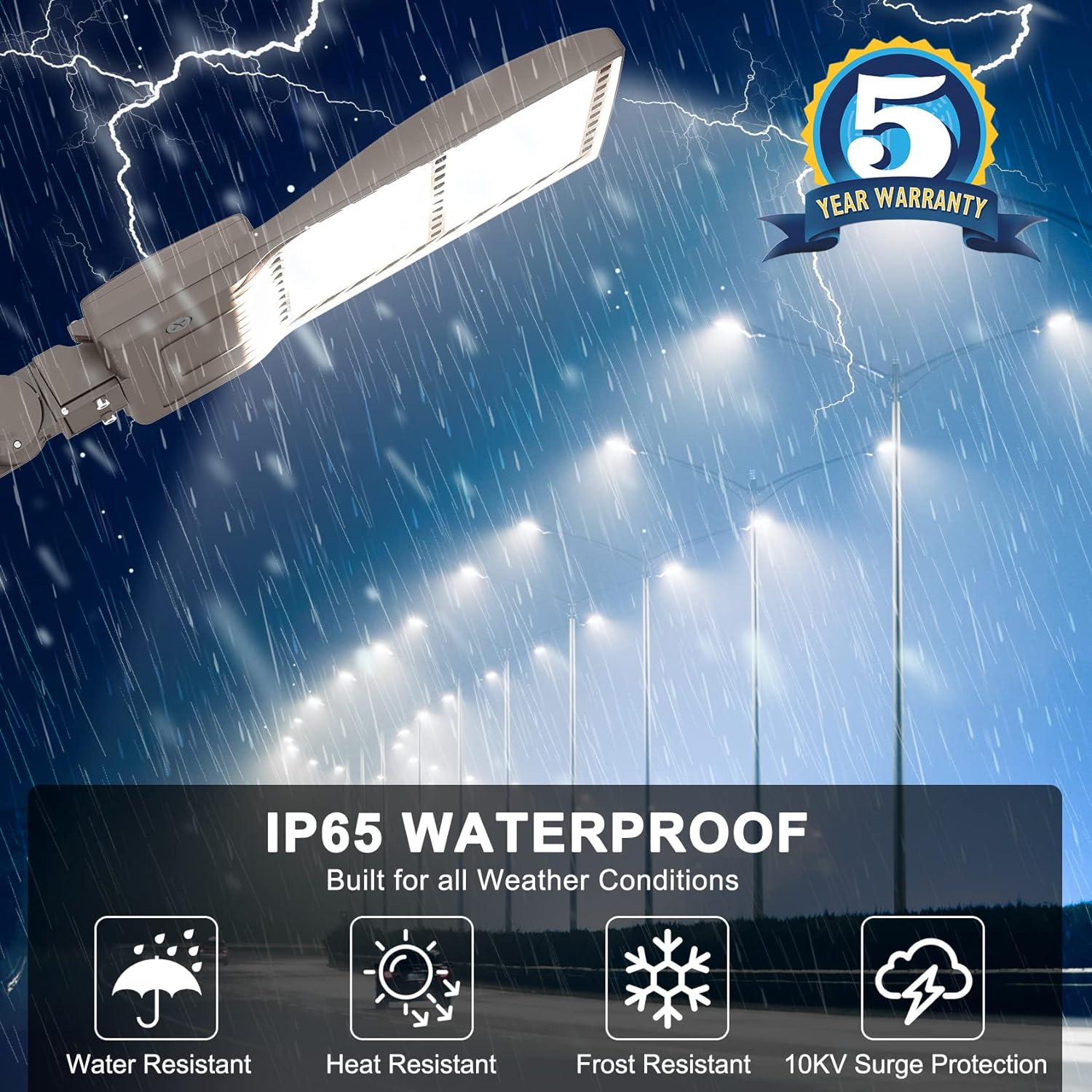 Elevate your outdoor space with our 400W LED Parking Lot Light. Boasting 56,000 lumens, this UL DLC listed light provides bright, efficient lighting for roads and yards. Its waterproof design and slipfitter mount make it ideal for any environment. Experience the elegance of 5000K LED lighting, perfect for commercial use.